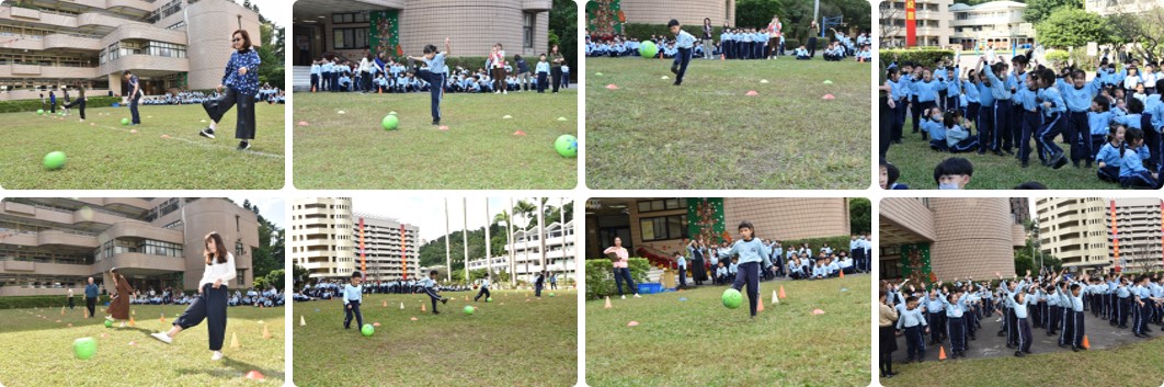 今年的比賽內容同樣融入起球、運球、停球到射門等連貫動作,期望全班同學都能參與其中,做到「人人一球、輪流射門」。比賽以各班進球總數最多者為優勝,考驗學生的基本足球技巧與臨場表現。全場加油聲不斷,每一位小小選手都屏氣凝神,把握每一次踢球的機會,將平時體育課練習的射門技巧發揮得淋漓盡致。當隊友成功射門時,場邊隨即響起熱烈的掌聲與歡呼聲,讓比賽氣氛緊張又刺激。
