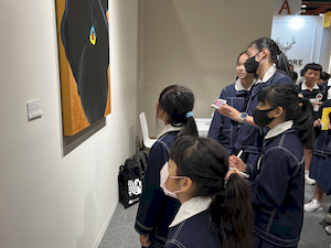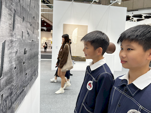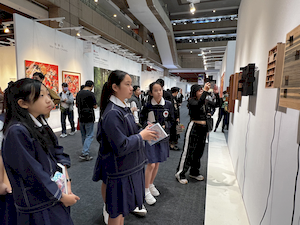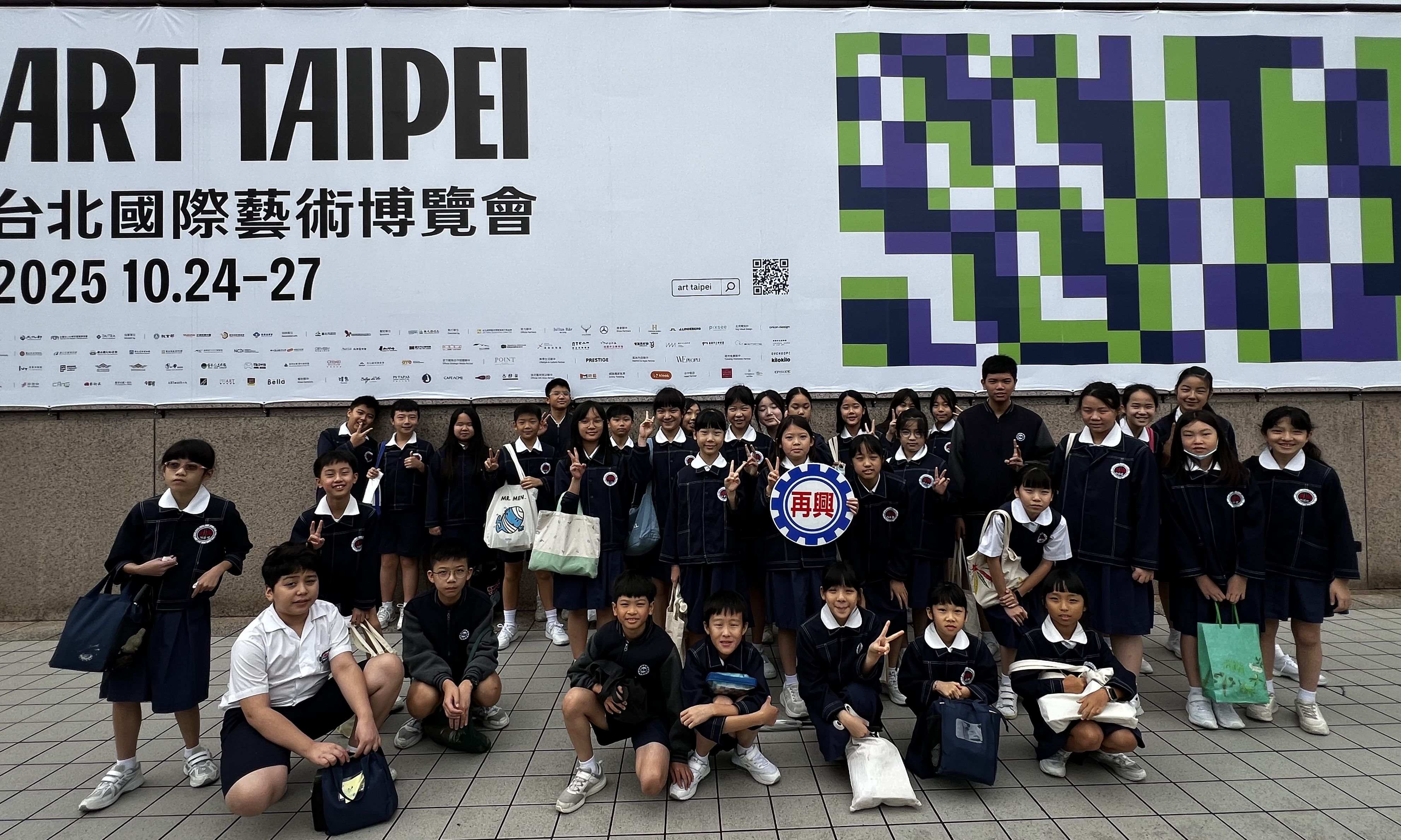 延續前次良好的成效,再興小學今年再度帶領學生參訪 ART TAIPEI 台北國際藝術博覽會,並將行程延伸為全日參觀,讓孩子在更從容的時光裡,與藝術對話、與美相遇。10月28日上午,36位學生在專業藝術教師團隊的陪伴下踏入展場,在專人導覽與現場互動中,展開一場心靈的美感之旅。 展覽伊始,工作人員先介紹參觀規範,並邀請學生「傾聽作品的召喚」,以開放的心靈去感受藝術的語言。隨後,孩子們在導覽員引領下走進「MIT新人推薦特區」與「台灣原住民族藝術特區」。在新人特區裡,他們看見劉恩霖、劉星佑等八位新銳藝術家以繪畫、雕塑、攝影、動態影像與裝置等多樣媒介,探索當代觀看的可能。這些藝術家從日常「理所當然」的角落出發,鬆動既有的框架,使觀看不再只是視覺行為,而成為介入、提問與反思的過程。學生們與藝術家互動提問的片刻,正是一種學習的深呼吸——他們打開了新的感官之窗,也學會了以心觀物。