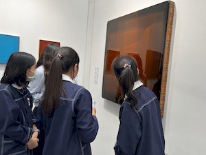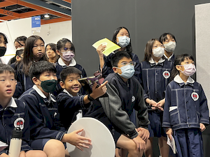 途中,學生們意外巧遇文化部李遠部長,並共同欣賞新銳藝術家杜宜蓁作品《序曲》,嘗試思考作品中對觀眾拋出的提問。這場跨越世代與角色的對話,為孩子們的觀展旅程留下難忘的回憶。