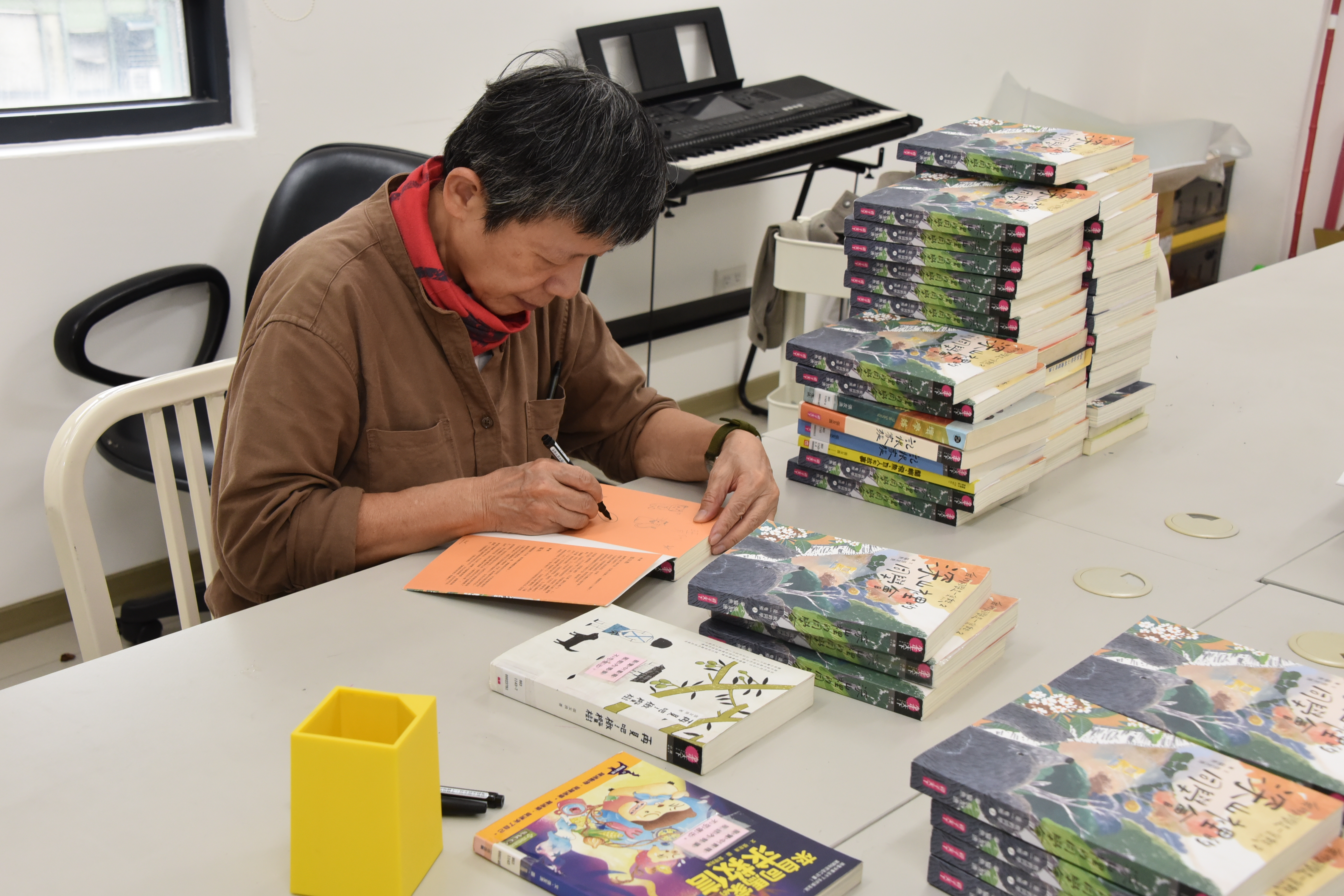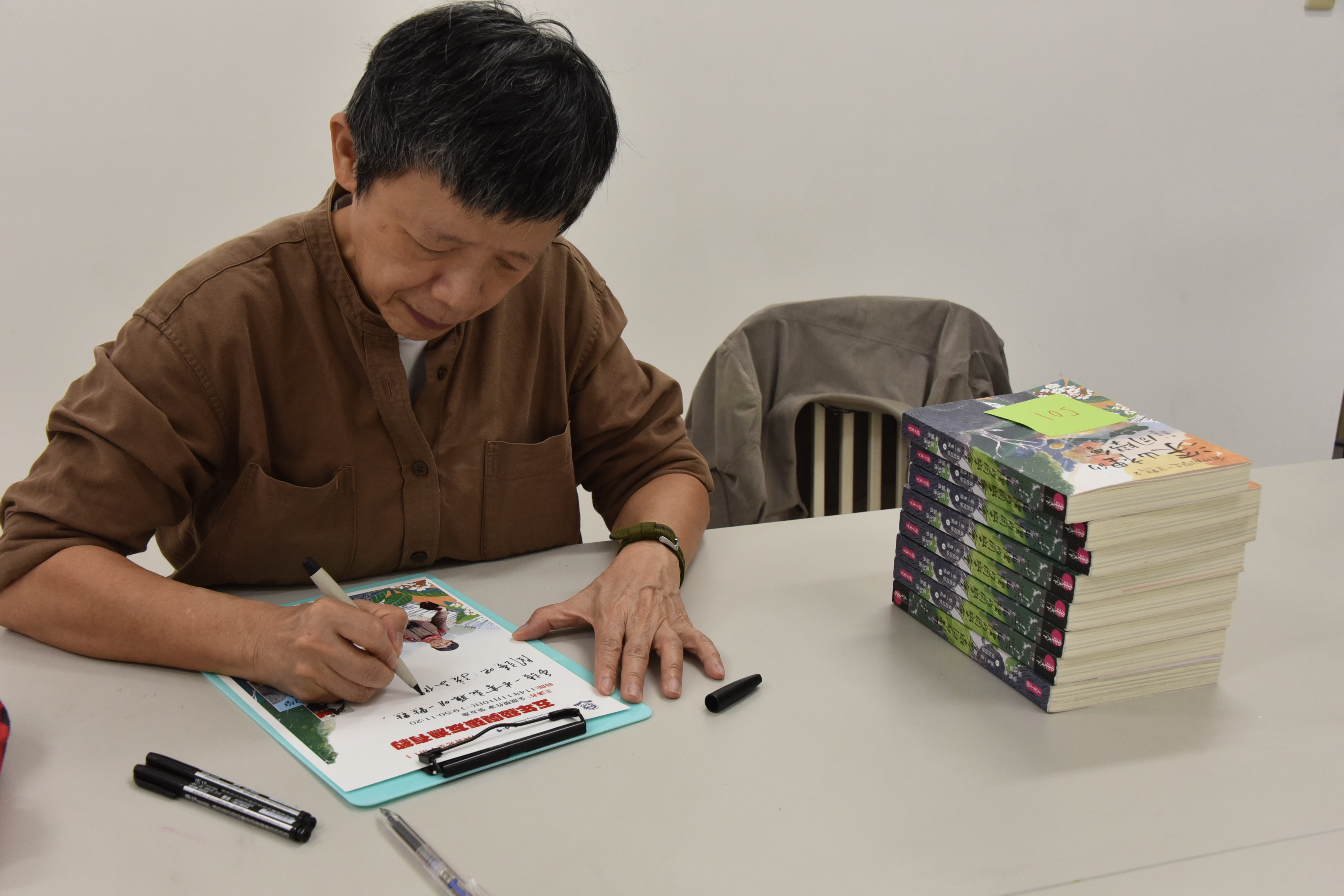 分享席間告訴孩子們一本書的誕生,重要的是收集生活中一些特別的時刻,不論是美麗的、悲傷的、憤怒的、荒謬的、失望的感受,或是旅遊中的發現,都可以作為故事的素材,勉勵孩子要練習讓生活與寫作結合,讓自己處在尋找的氛圍裡。更以《我的爸爸是流氓》、《今天好嗎,公主殿下》、《記恨家族》等作品為例,分享故事的創作靈感皆源自於作者的所見所聞及感受。比如第一本書是展現補習班教書時,對手臂受傷學生的關懷;第二本書是對未成年小媽媽的關懷與對女性愛護自己的呼籲;第三本書則是傳達家家有本難念的經,如何化解家族恩怨值得大家思考;這些創作歷程能讓孩子們了解能寫出一本好書是因為作者樂於主動關心周遭人事物,並在適當的時機,將所感所悟化成文字傳遞到讀者心裡。