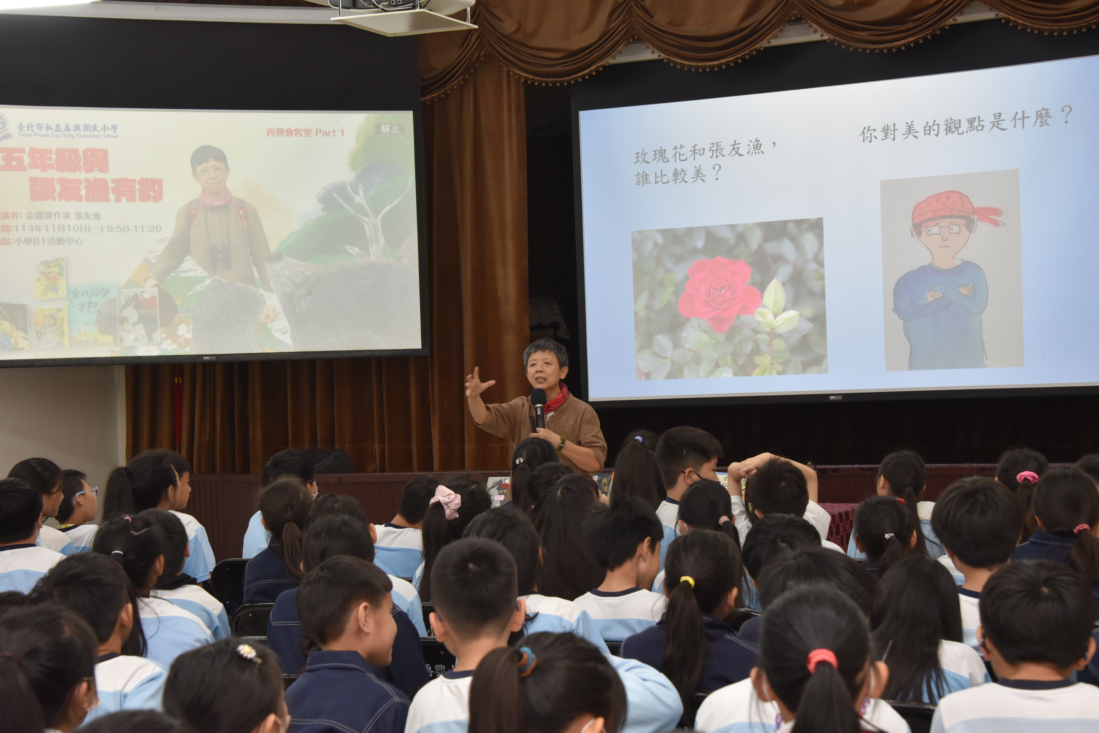 11月10日上午,本學期第一場興光雲集會客室,邀請到金鼎獎作家-張友漁作家蒞校和孩子們暢談創作的靈感泉源與故事點滴。