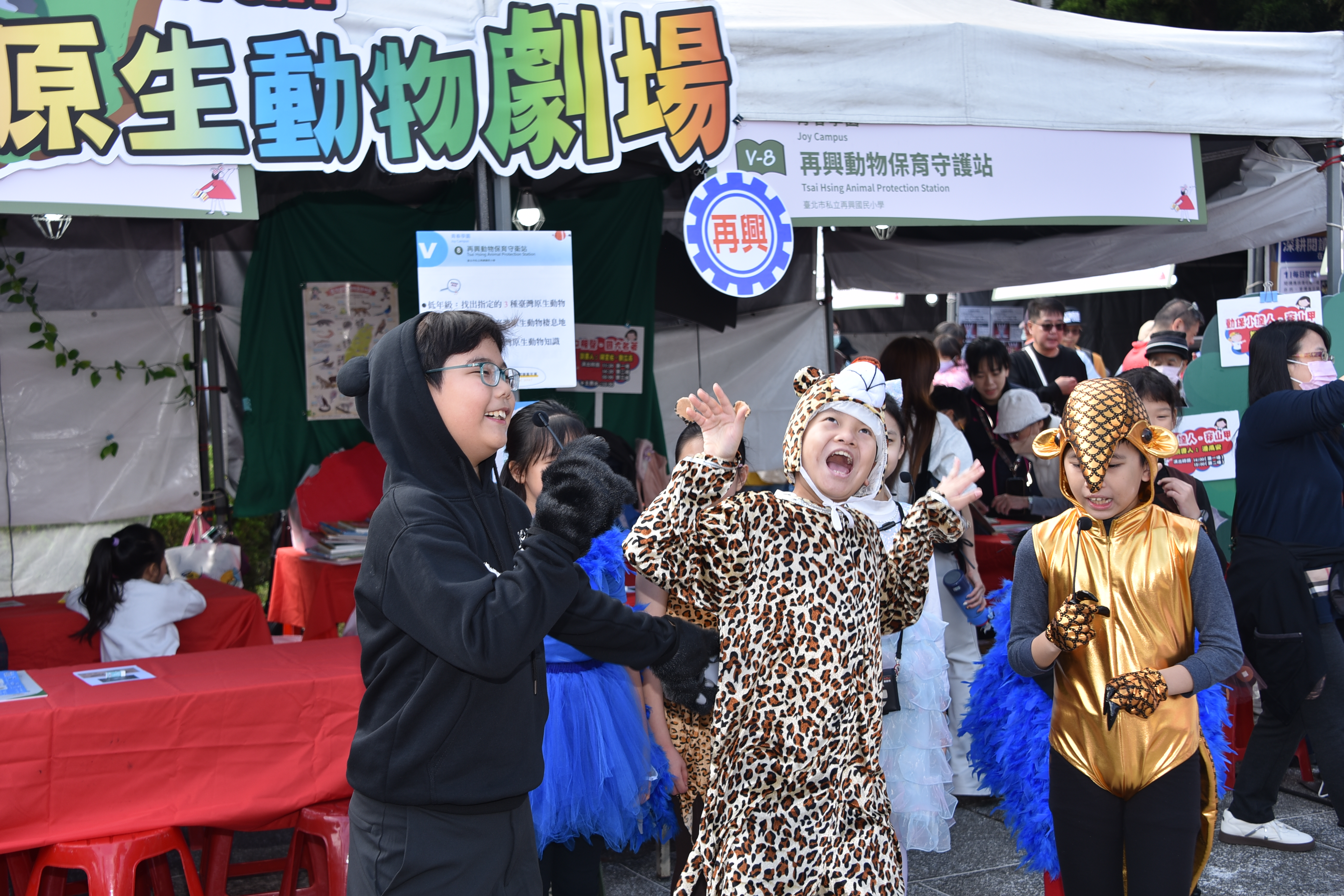 2025 臺灣閱讀節熱鬧展開,再興小學以連續六年參與的扎實經驗,再度成為活動現場最具教育特色的亮點攤位。今年主題為「再興動物保育守護站」,以臺灣原生動物為核心設計闖關活動、藝術創作體驗與學生展演,展現學校持續深耕閱讀、多元學習與公民素養的成果。