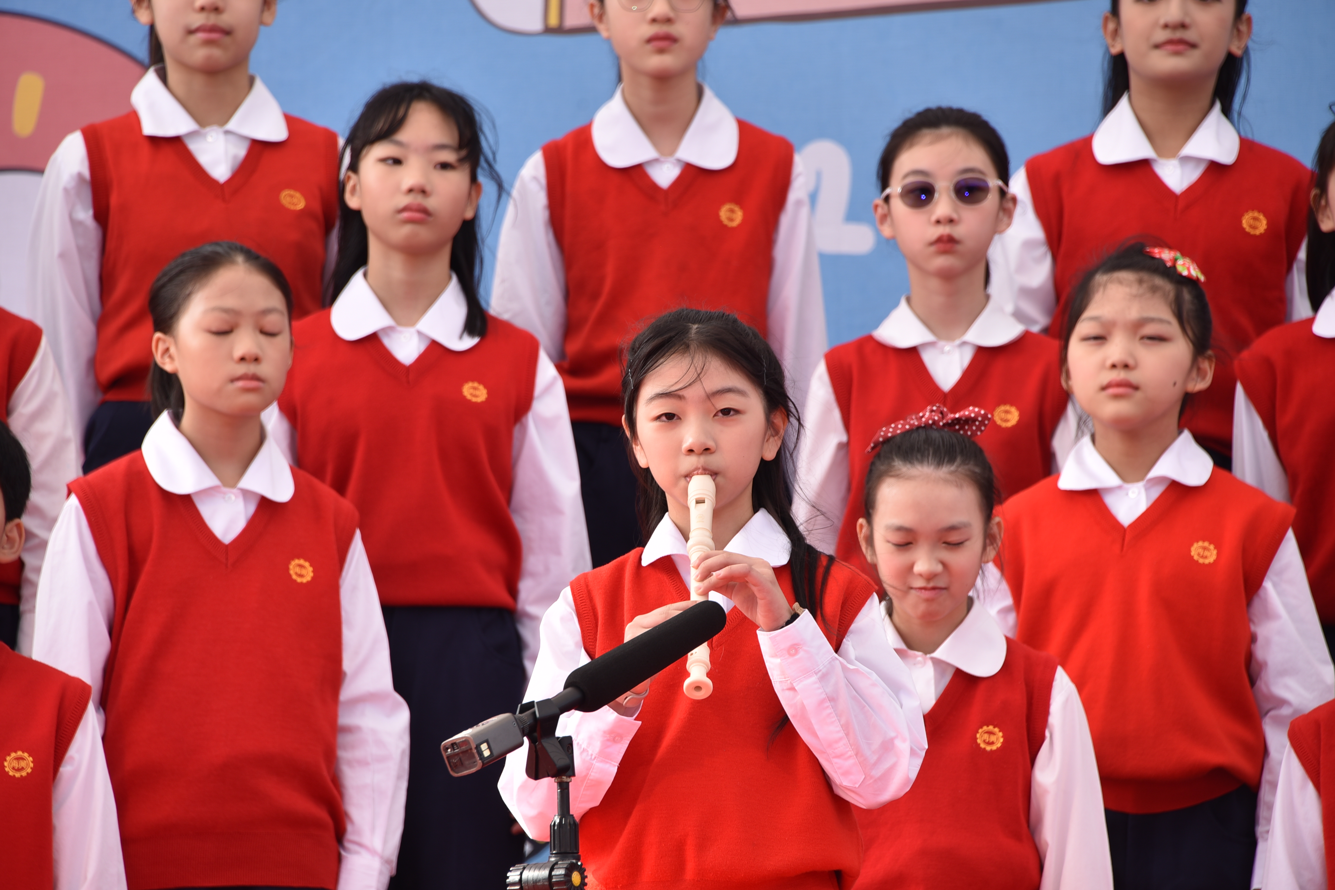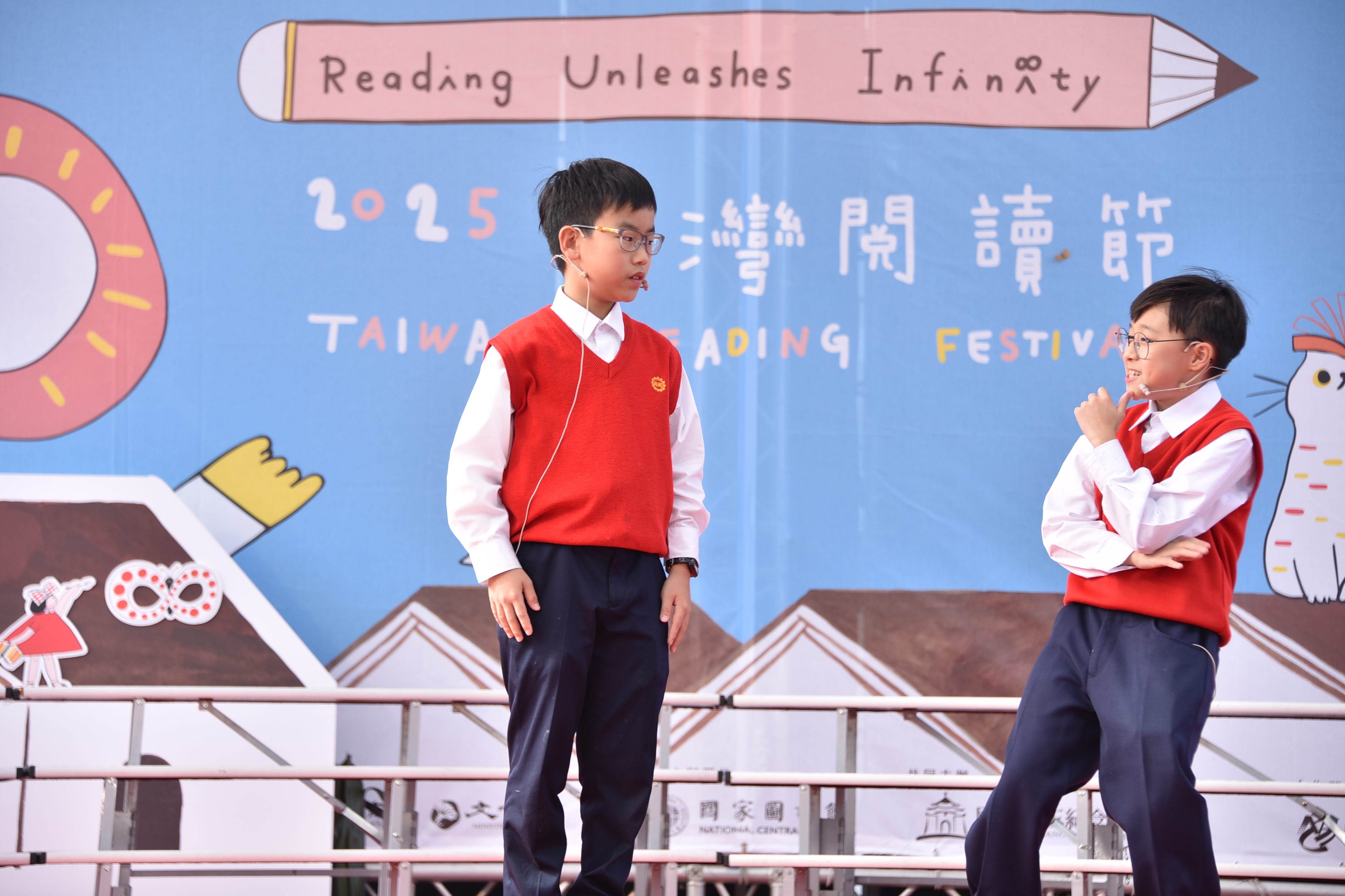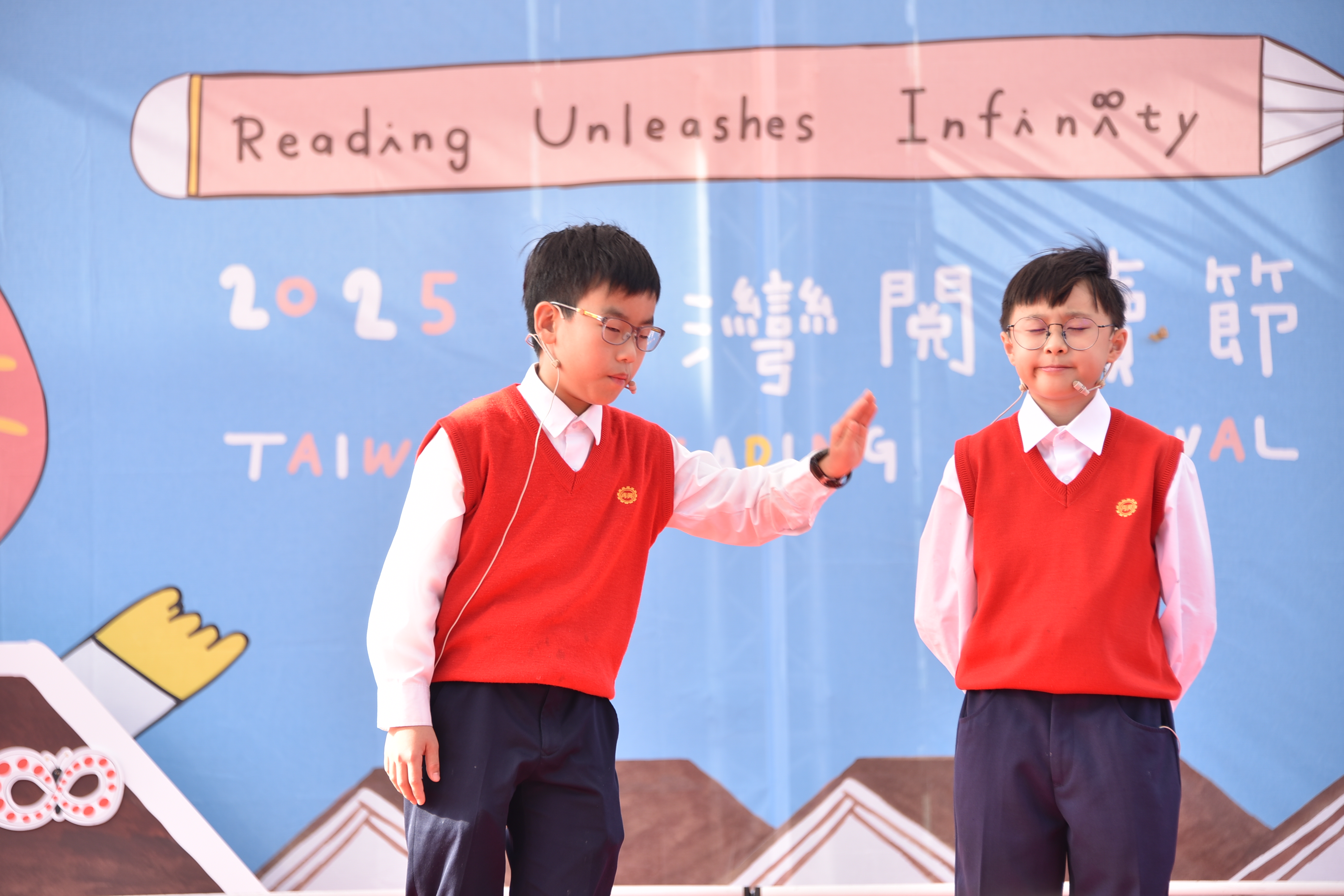 對口相聲則由甫獲臺北市114年相聲比賽乙組對口第一名的五年級兩位同學演出《四大名著》,透過逗趣幽默的相聲段子,讓觀眾反思閱讀的重要,以及引發讀者閱讀經典文學的興趣。整個節目安排完整展現再興「閱讀與創作校本課程」的教育成果。