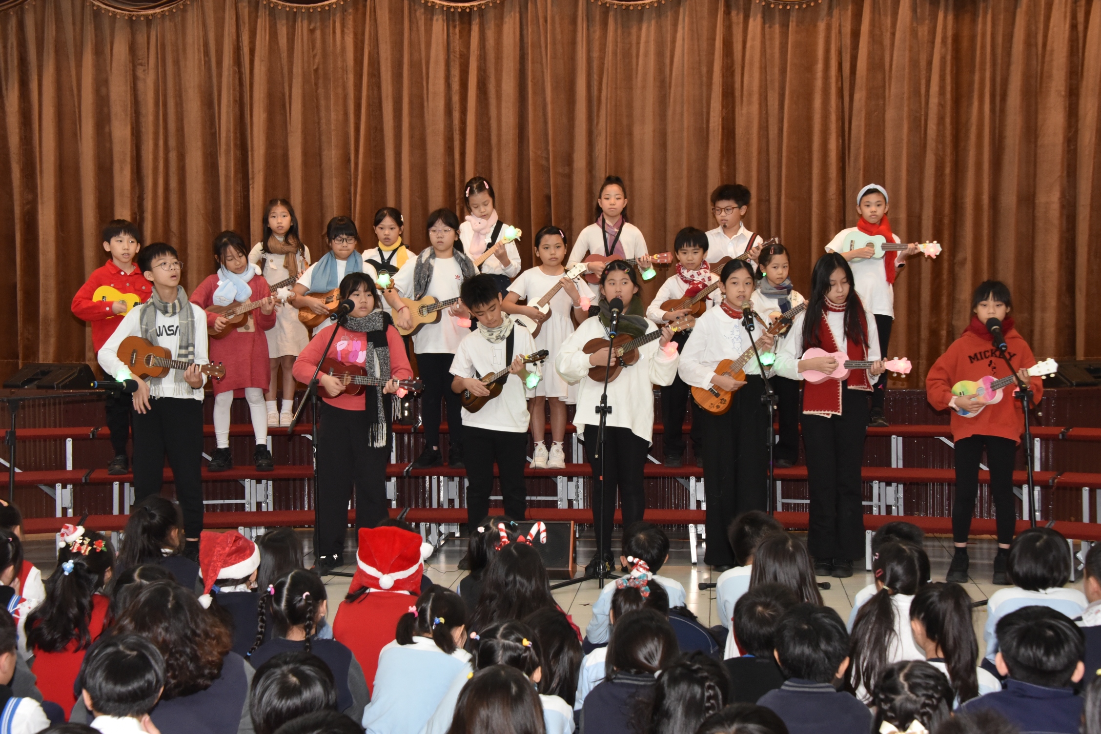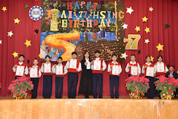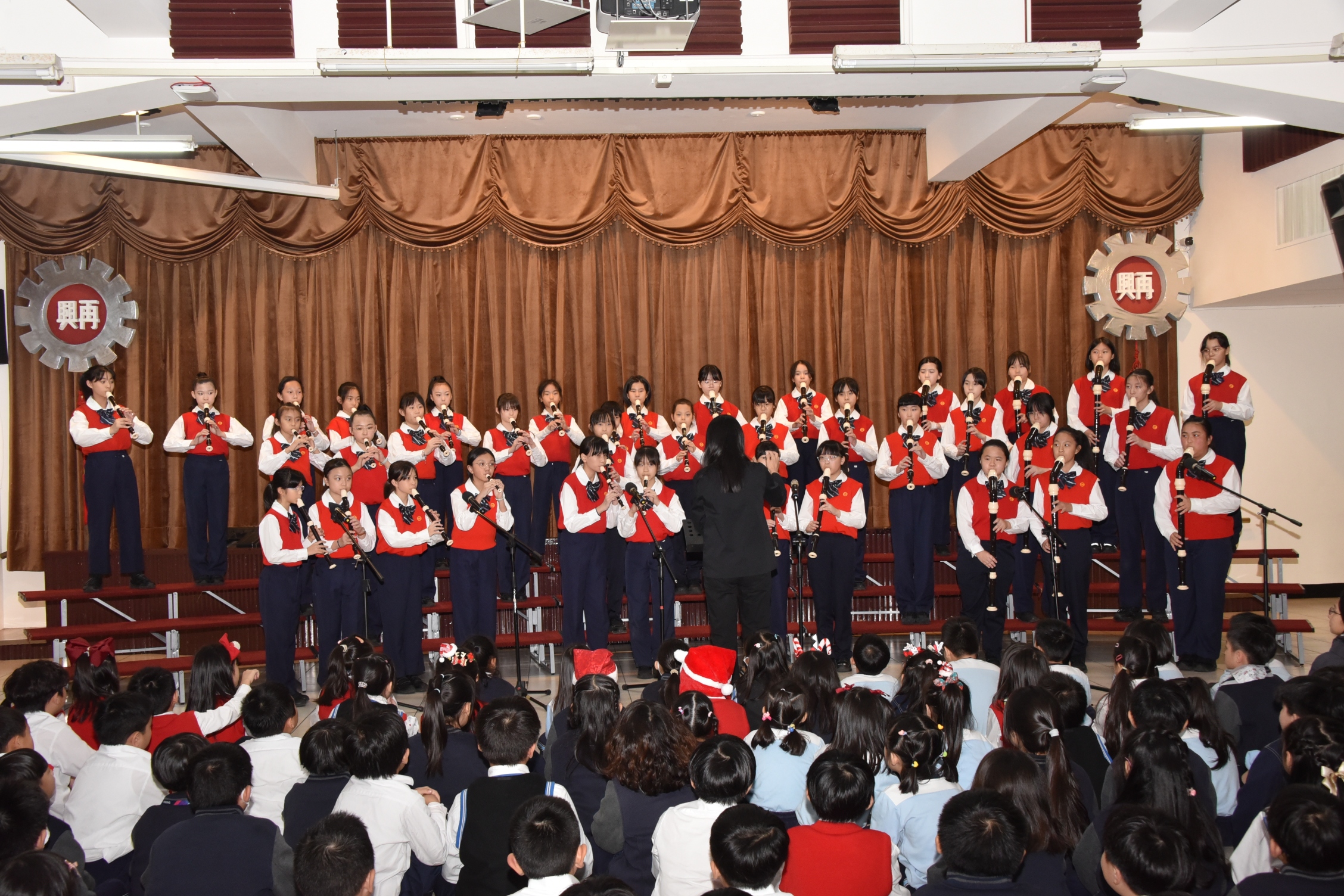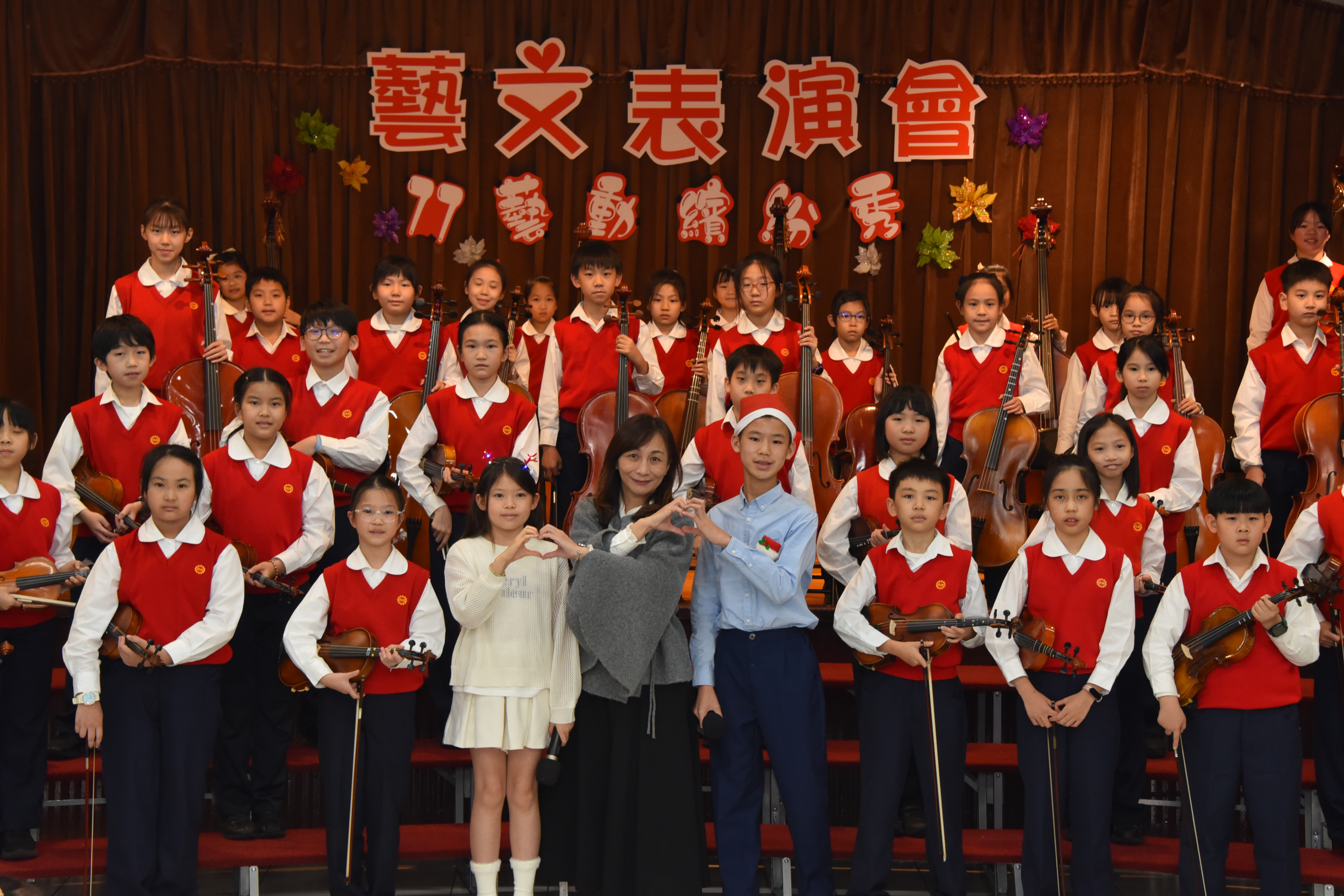 合唱團以純淨和諧的歌聲演唱《知足》與《Golden》,唱出感謝、珍惜與希望,象徵再興小學在傳承中持續邁向嶄新未來;最後,弦樂團帶來《Raiders March》、《Joy to the World》及《Jingle Bells》,溫潤而層次豐富的樂聲在活動中心緩緩流轉,為整場藝文表演會畫下優雅而圓滿的句點。活動尾聲,楊珩校長致詞勉勵全體師生,肯定師長們的用心指導與學生的努力付出,期許孩子們在再興這片溫暖的學習園地中,持續探索自我、累積能力,寫下屬於自己的精彩篇章。 |