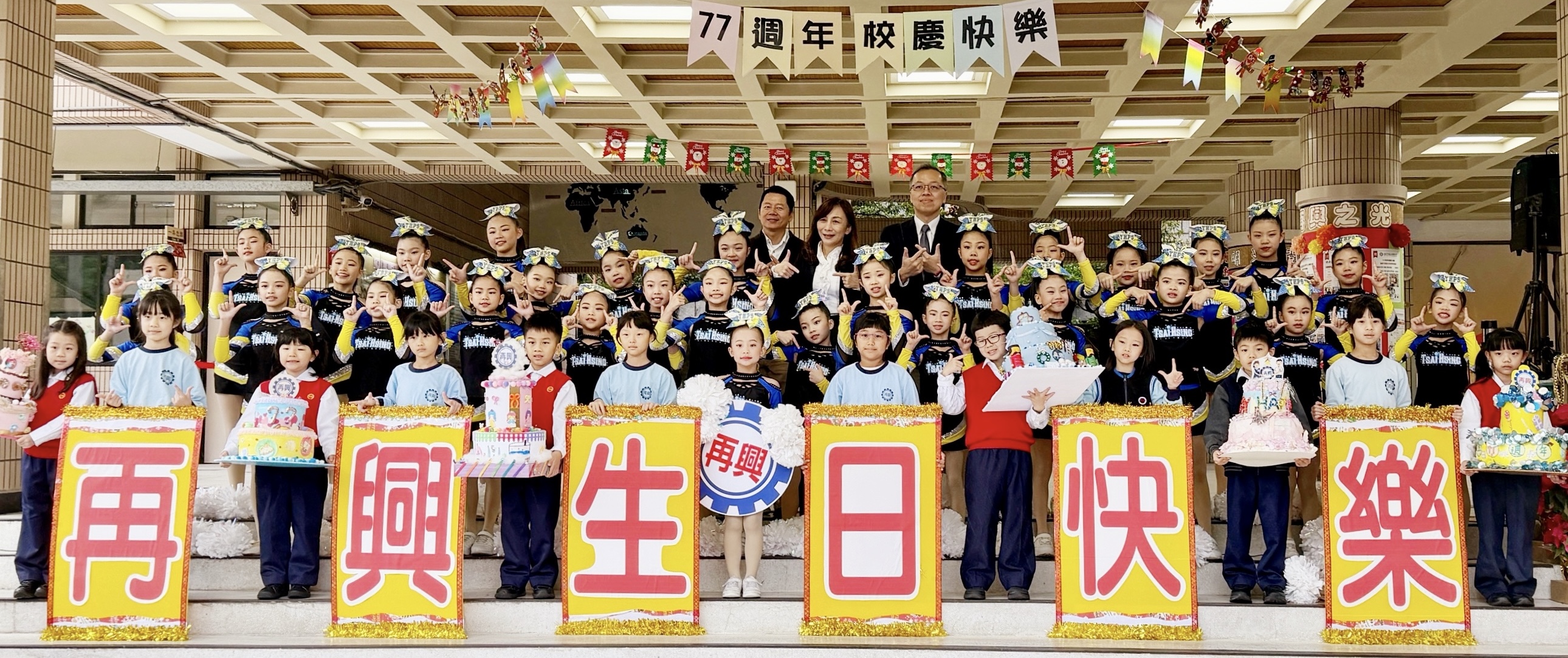 今年是再興創校77週年,學校於12月25日辦理校慶活動。適逢行憲紀念日放假,許多家長到校參與,校園中人潮踴躍、氣氛溫馨熱烈。