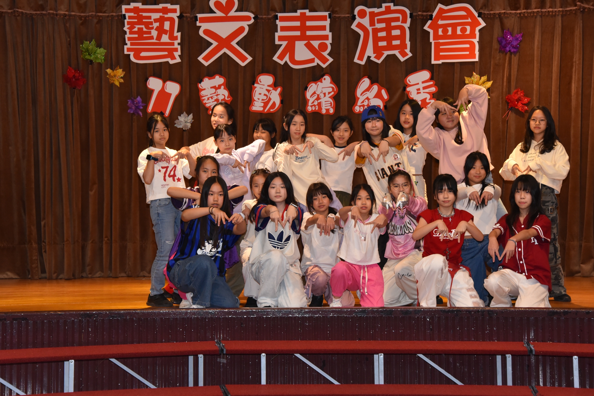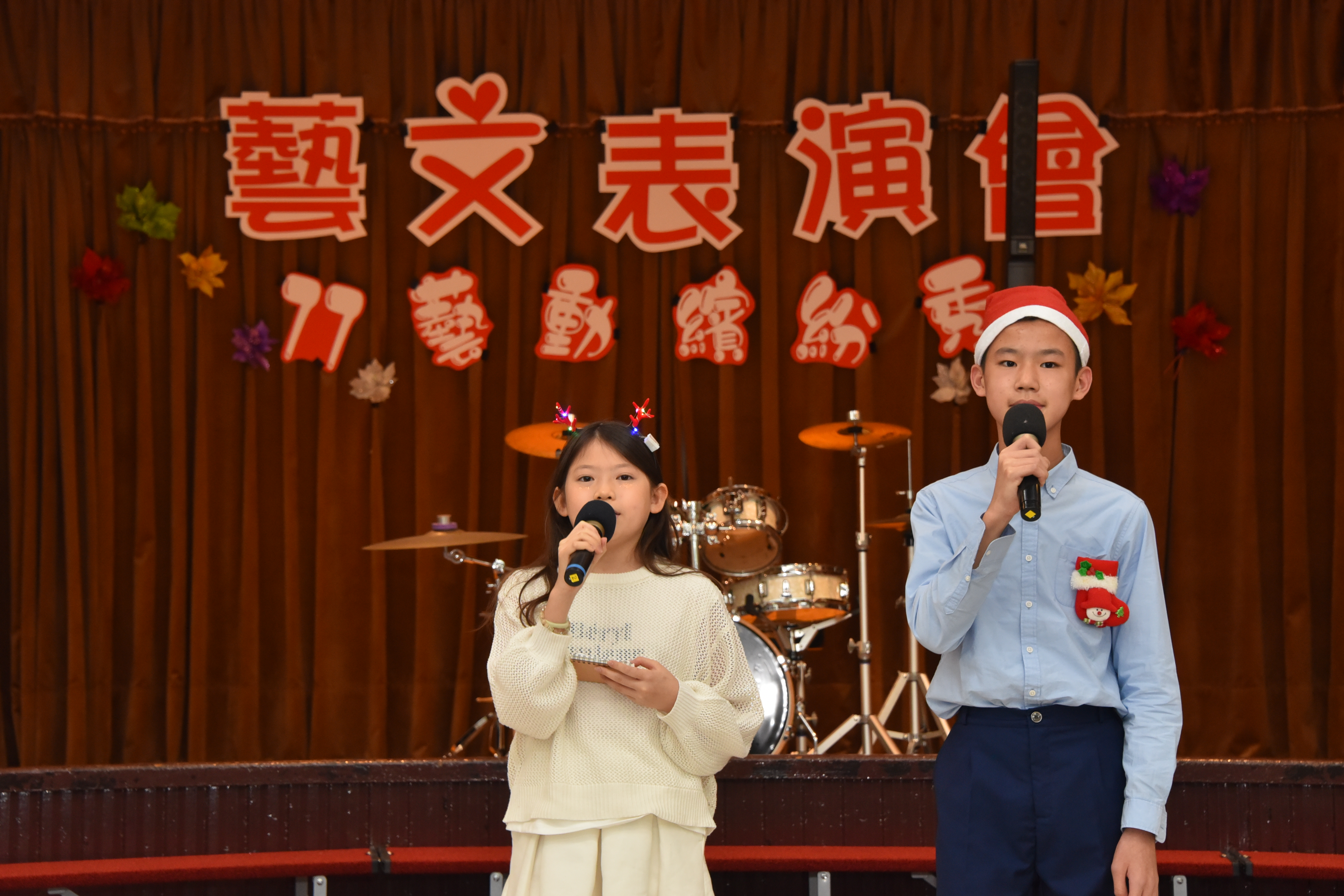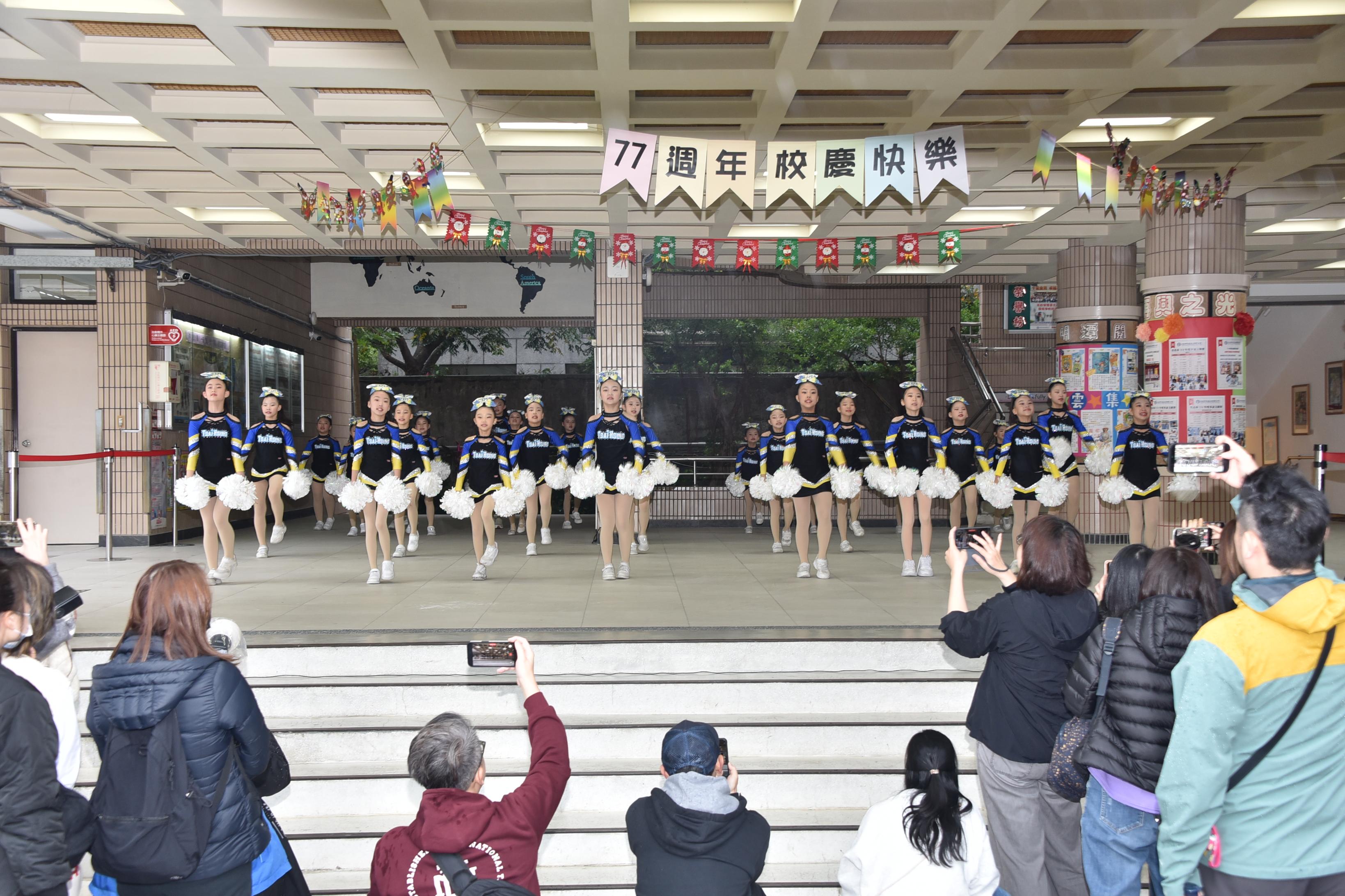 午後登場的「77藝動繽紛秀」藝文表演會,透過音樂、舞蹈、戲劇與社團展演,呈現學生多元學習成果,也將校慶氛圍推向高潮。本次藝文表演會由林軒禾與張宸僖擔任主持,兩人以自然流暢、幽默風趣的口條串聯節目。表演首先由三仁陳以諾演奏爵士鼓《Lucky Strike》揭開序幕,節奏明快、張力十足;接著直笛團演奏《外婆的澎湖灣》,旋律溫柔悠揚;烏克麗麗社自彈自唱《白月光與朱砂痣》,為校慶增添感動與祝福。隨後登場的英語戲劇《Stop, Think, Act.》以生活化情境融入情緒管理與行動思考的概念,深具教育意義;MV舞蹈展演《Rebel Heart》節奏俐落、充滿青春能量,兒童舞蹈社帶來《M.O.》與《Golden》,展現孩子自在做自己、勇敢發光的舞台魅力。