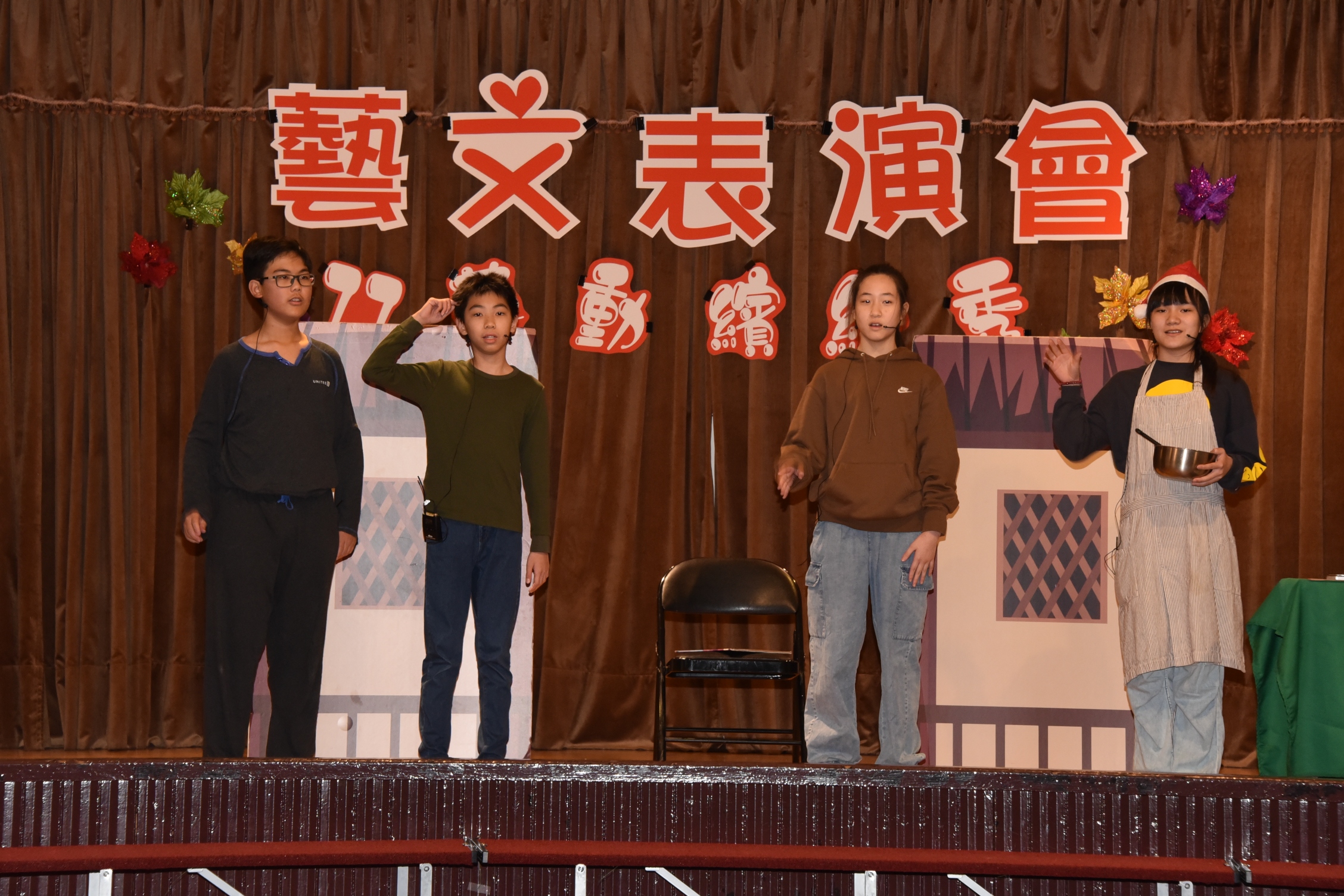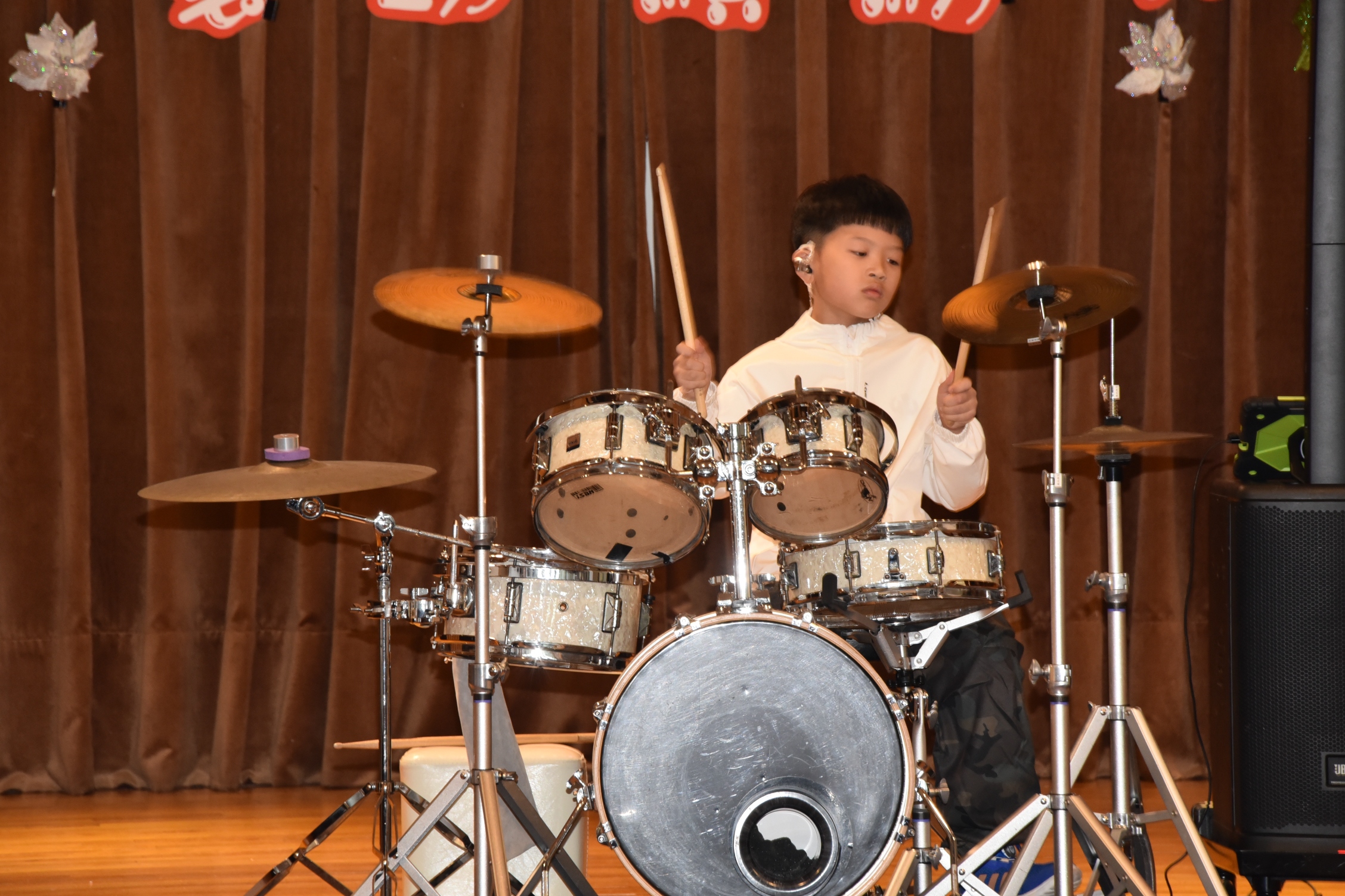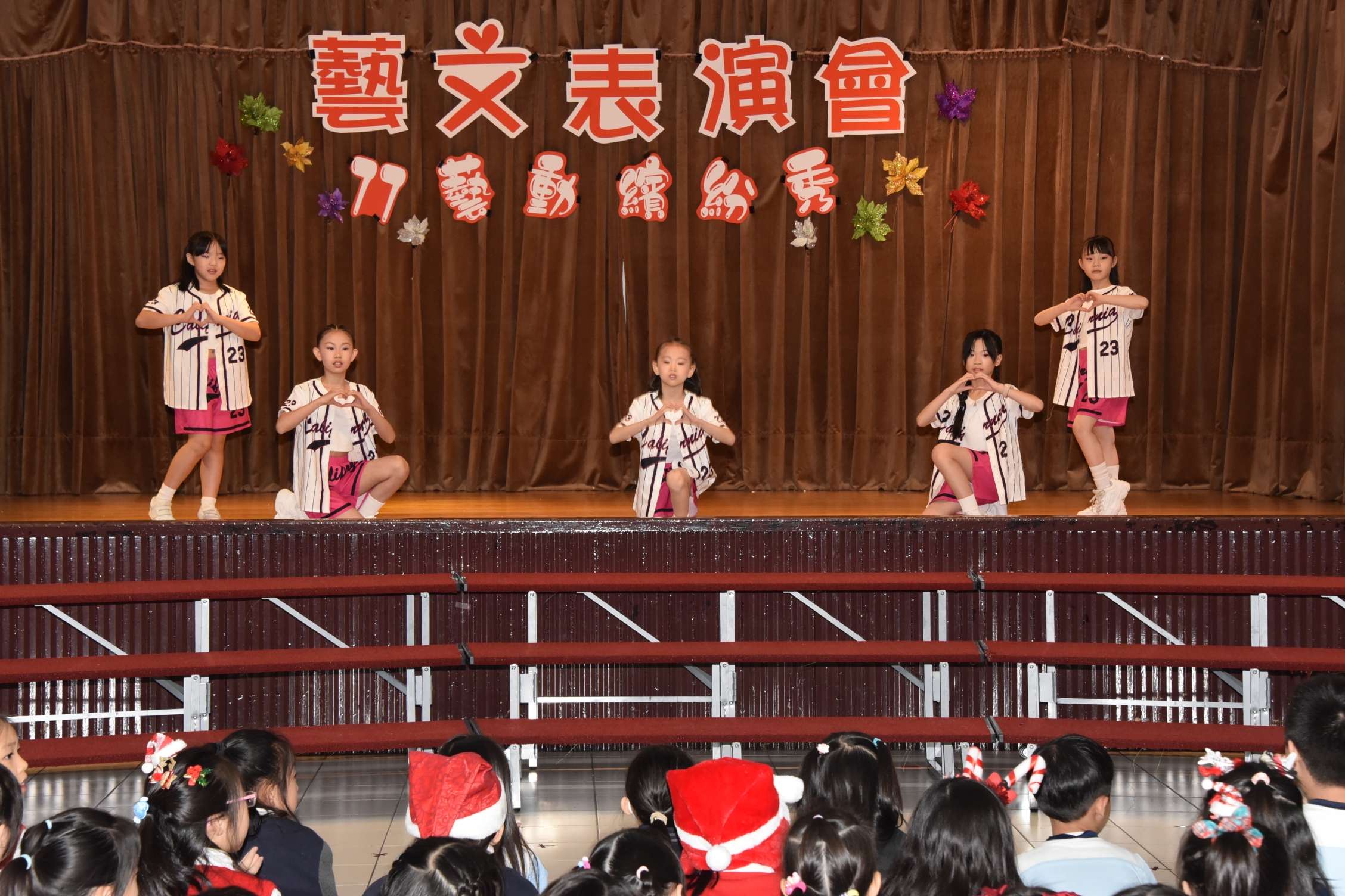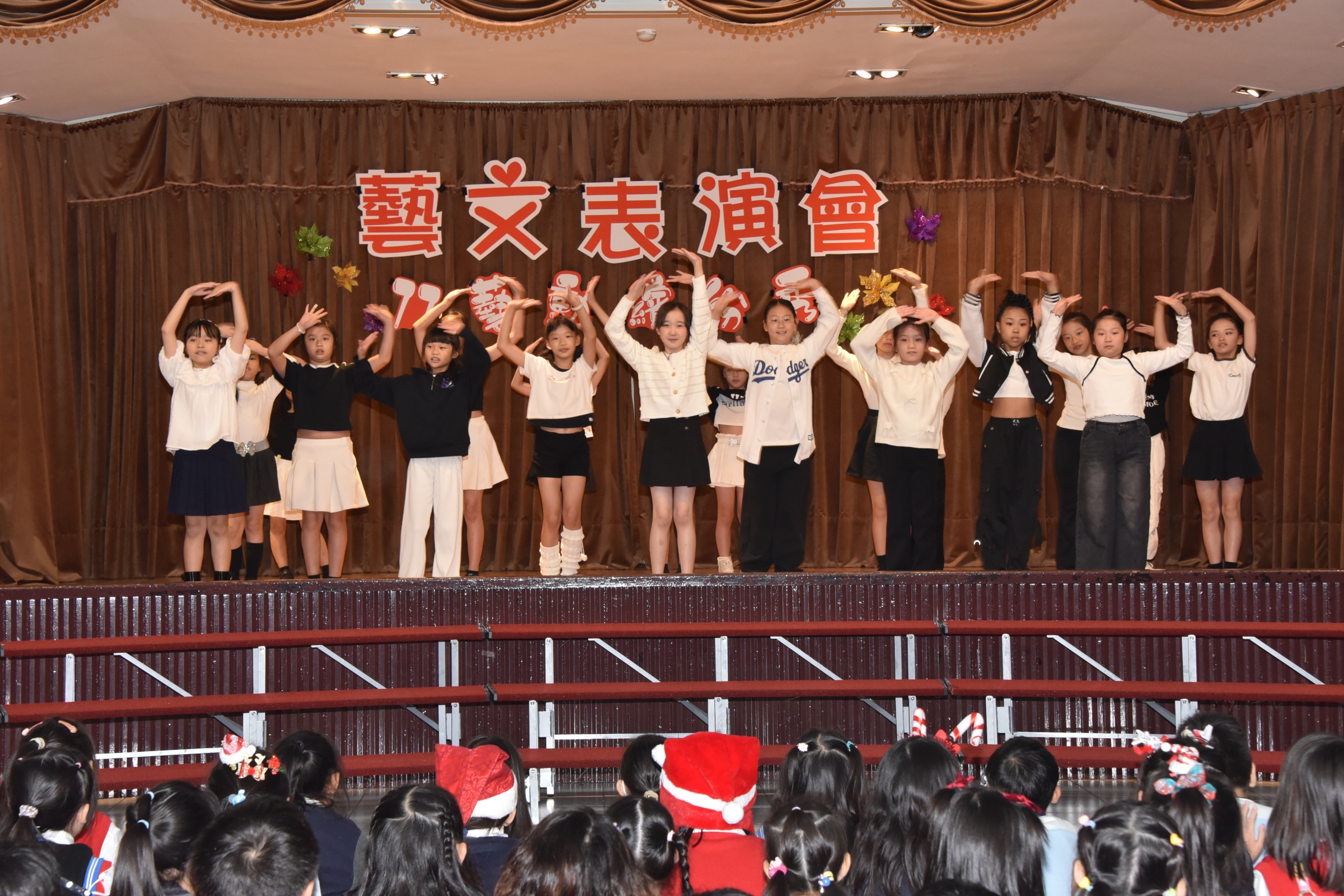 午後登場的「77藝動繽紛秀」藝文表演會,透過音樂、舞蹈、戲劇與社團展演,呈現學生多元學習成果,也將校慶氛圍推向高潮。本次藝文表演會由林軒禾與張宸僖擔任主持,兩人以自然流暢、幽默風趣的口條串聯節目。表演首先由三仁陳以諾演奏爵士鼓《Lucky Strike》揭開序幕,節奏明快、張力十足;接著直笛團演奏《外婆的澎湖灣》,旋律溫柔悠揚;烏克麗麗社自彈自唱《白月光與朱砂痣》,為校慶增添感動與祝福。隨後登場的英語戲劇《Stop, Think, Act.》以生活化情境融入情緒管理與行動思考的概念,深具教育意義;MV舞蹈展演《Rebel Heart》節奏俐落、充滿青春能量,兒童舞蹈社帶來《M.O.》與《Golden》,展現孩子自在做自己、勇敢發光的舞台魅力。