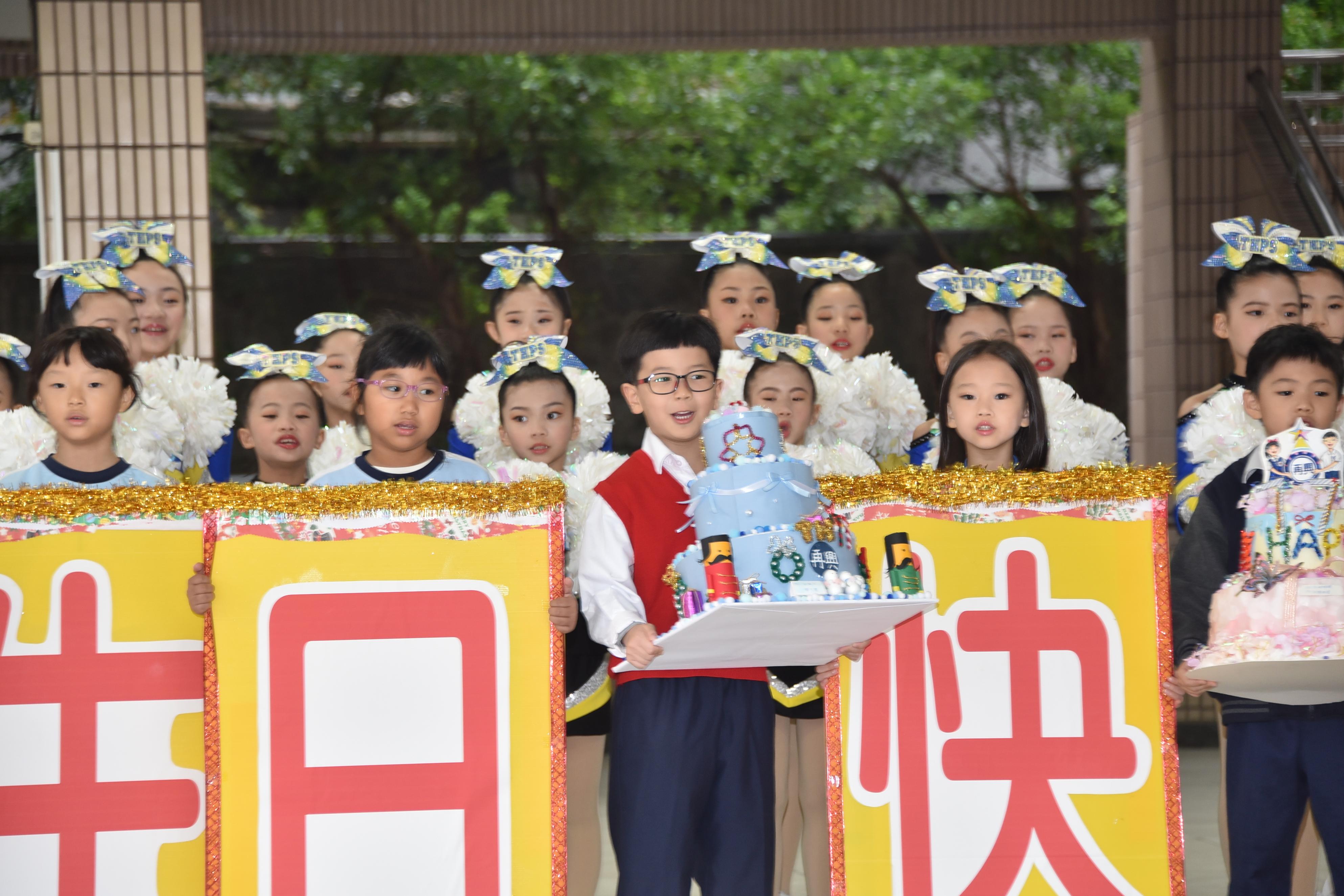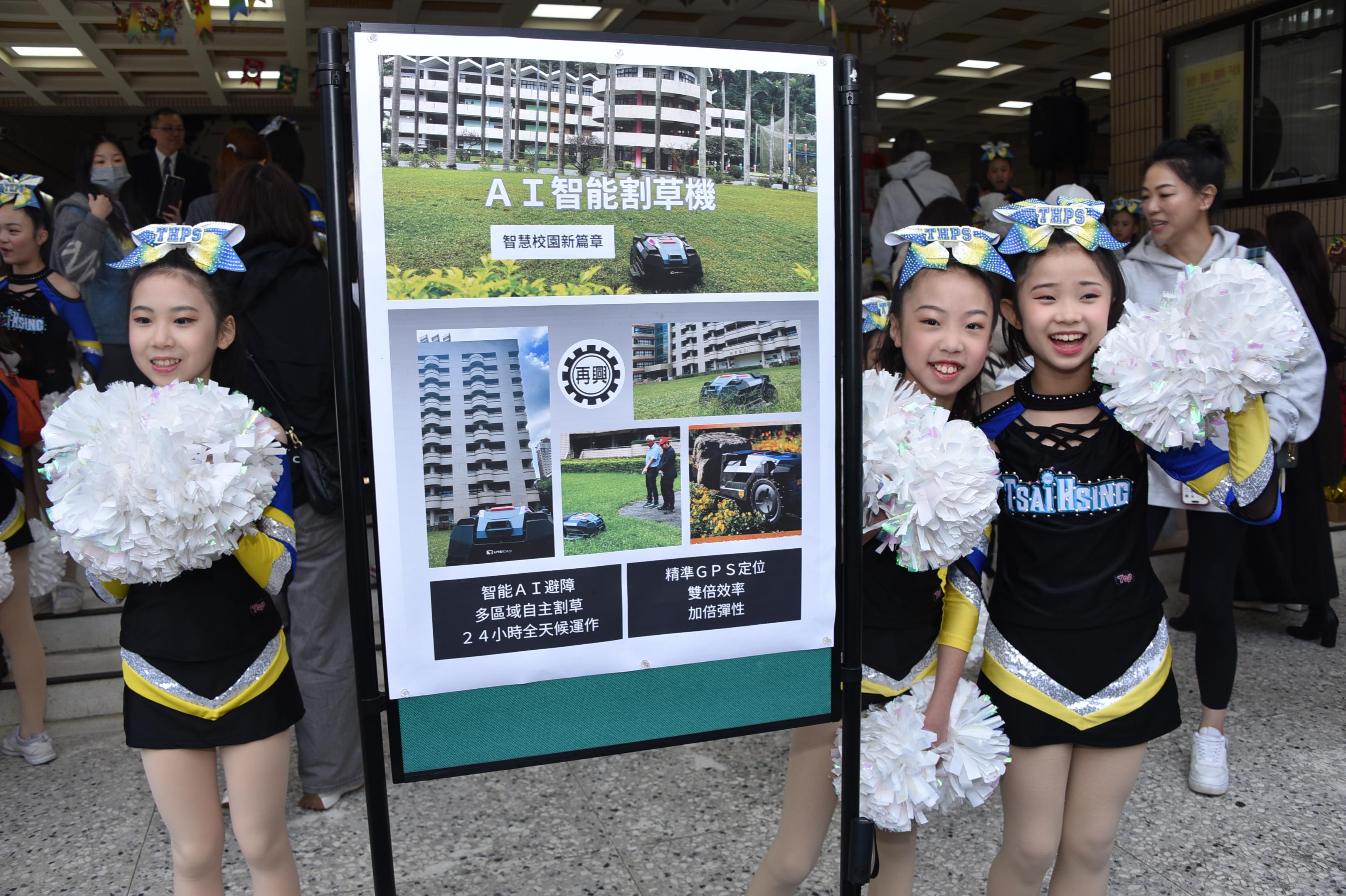 慶祝活動由再興啦啦隊率先登場,隊員們已連續三年參加全國啦啦隊錦標賽「彩球指定動作」,並一舉囊括高、低年級組冠軍。孩子們以熱情奔放、動感十足的精湛舞姿,瞬間點燃全場氣氛。考量當日天氣與場地潮濕因素,今年健身操表演取消;由一年級學生端出五年級學生製作的生日蛋糕,全校齊聲合唱祝福再興生日快樂,並在溫暖的大合照中留下珍貴回憶,為校慶活動揭開序幕。啦啦隊精彩演出後,再興AI智能割草機於草坪亮相,吸引家長與學生駐足觀看。該設備運作過程零廢氣排放,是學校推動綠能與環境教育的具體行動。