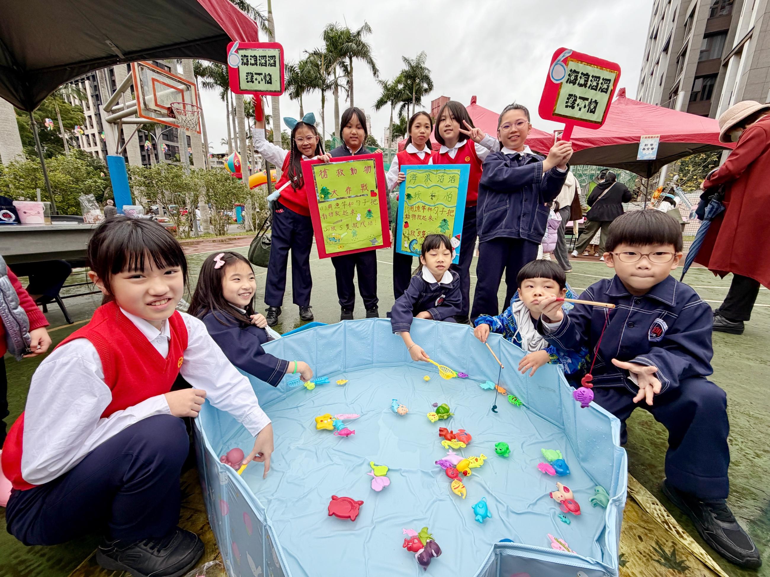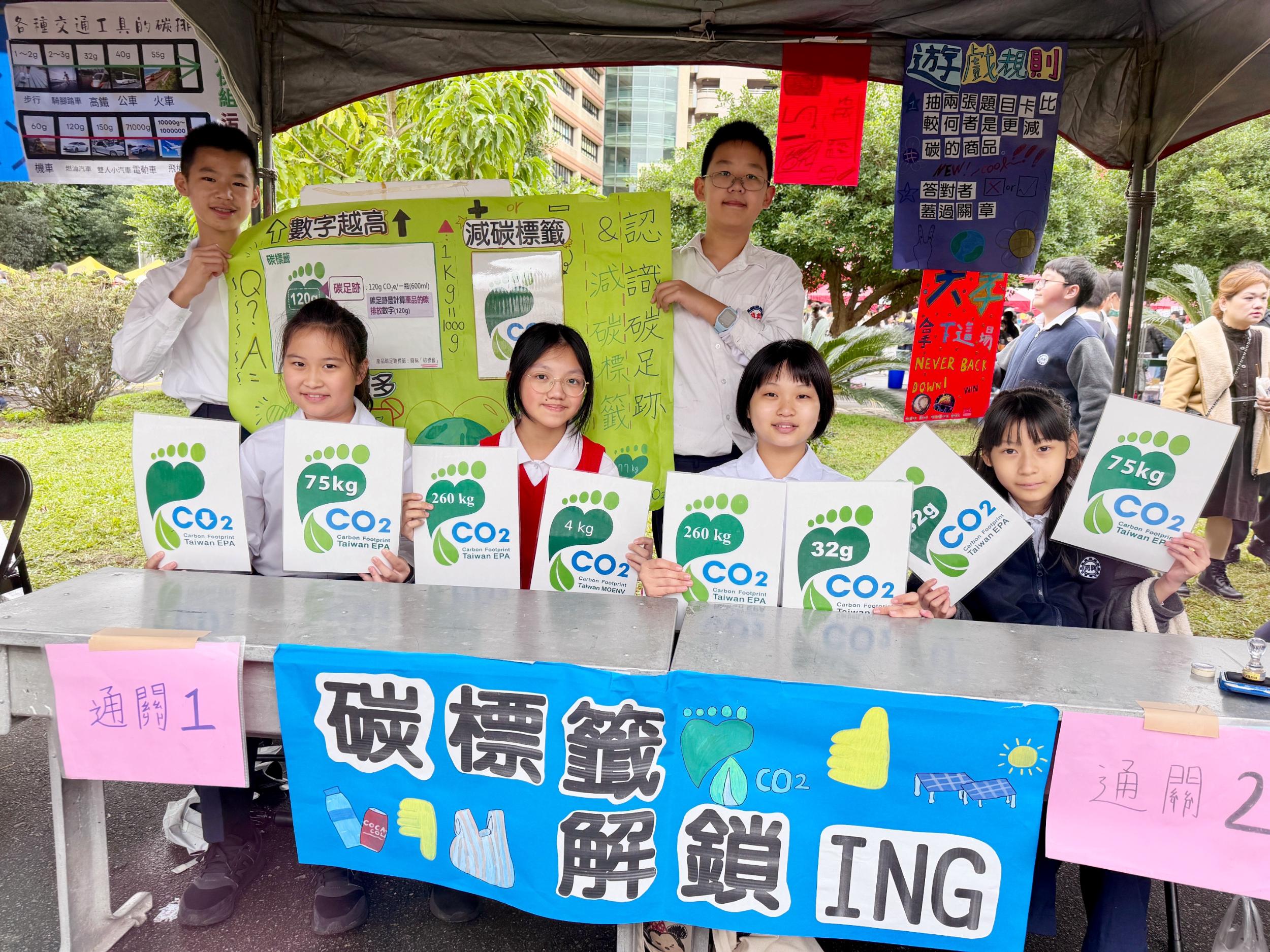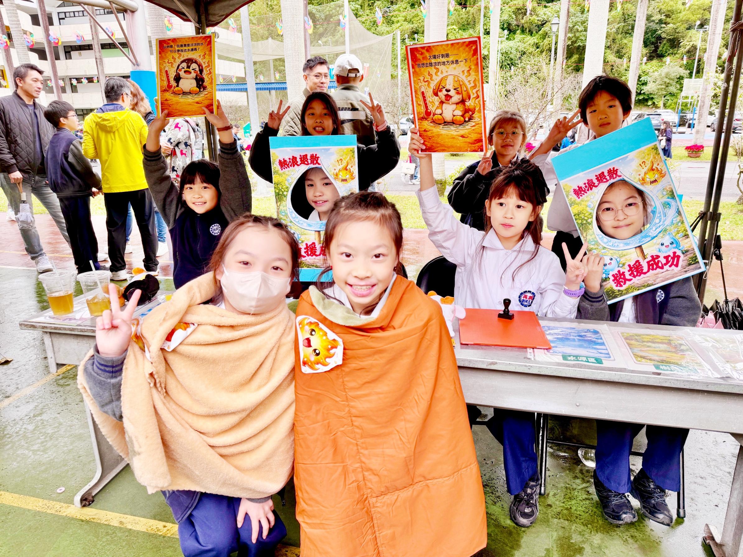 眾所期待的闖關活動於上午9點30分正式登場,今年主題為【氣候行動.我們一起!】,以SDGs目標13「氣候行動」為核心,依年級設計不同學習面向:二年級「發現氣候小祕密」、三年級「氣候變遷追真相」、四年級「氣候生活大不同」、五年級「面對氣候新挑戰」、六年級「淨零碳排迎未來」。各班發揮巧思,透過簡報、手繪海報、圖卡與影片等媒材設計關卡,引導學生理解氣候相關概念;設計多元互動的遊戲,如大富翁、撈魚挑戰、配對、拼圖及大風吹等,讓孩子在操作與體驗中認識節能減碳行動。在師生協作的精心規劃下,各關卡以「好玩、好懂、做得到」為設計方向,把氣候知識轉化為行動體驗,學校透過校慶闖關課程持續深耕SDGs 教育,鼓勵孩子將所學落實於生活,邁向永續未來。