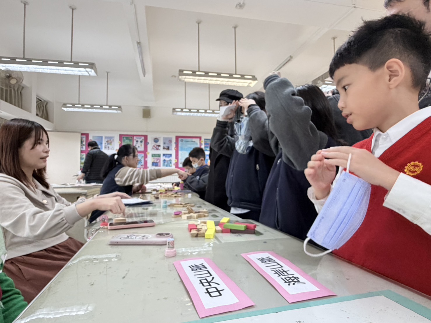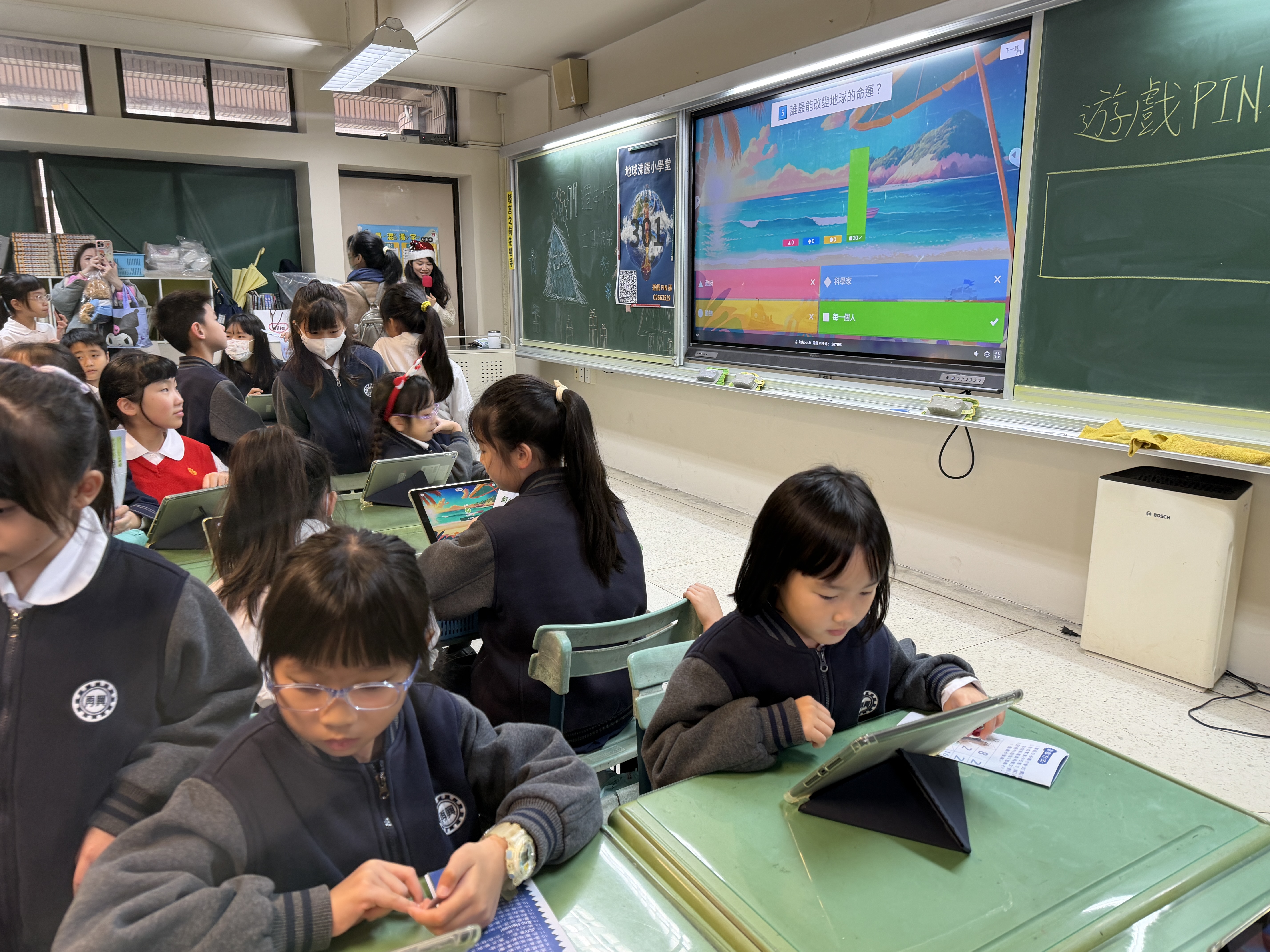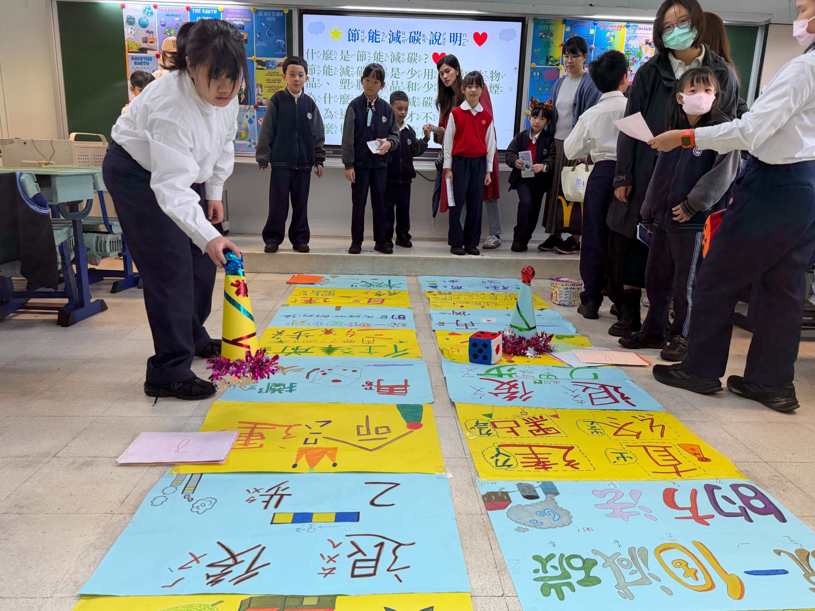 眾所期待的闖關活動於上午9點30分正式登場,今年主題為【氣候行動.我們一起!】,以SDGs目標13「氣候行動」為核心,依年級設計不同學習面向:二年級「發現氣候小祕密」、三年級「氣候變遷追真相」、四年級「氣候生活大不同」、五年級「面對氣候新挑戰」、六年級「淨零碳排迎未來」。各班發揮巧思,透過簡報、手繪海報、圖卡與影片等媒材設計關卡,引導學生理解氣候相關概念;設計多元互動的遊戲,如大富翁、撈魚挑戰、配對、拼圖及大風吹等,讓孩子在操作與體驗中認識節能減碳行動。在師生協作的精心規劃下,各關卡以「好玩、好懂、做得到」為設計方向,把氣候知識轉化為行動體驗,學校透過校慶闖關課程持續深耕SDGs 教育,鼓勵孩子將所學落實於生活,邁向永續未來。