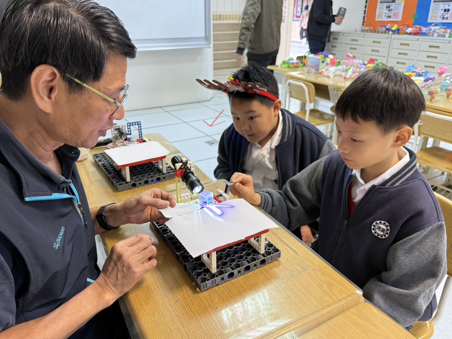 除了氣候主題闖關外,學校亦將各領域的學習成果融入闖關活動中呈現。以「趣味、體驗、互動」為發想,活動內容豐富多元,包括以環保為題發想的「Eco Heroes」、透過創意積木排列探索色光之美的體驗設計;結合手勢舞呈現臺灣五大地形的學習活動,或以「飛躍地圖、帶動物回家」的挑戰方式,引導學生在遊戲中理解地理概念;此外,透過藝術創作殿堂的薰陶,帶領親師生品味百年名畫,展現藝術學習的巧思與深度。整體而言,各領域課程呈現學生自主學習與學以致用的成果,展現再興持續深耕教育的用心與成效。