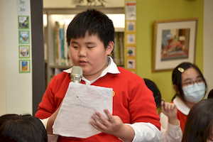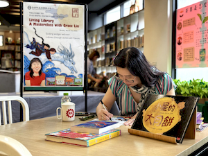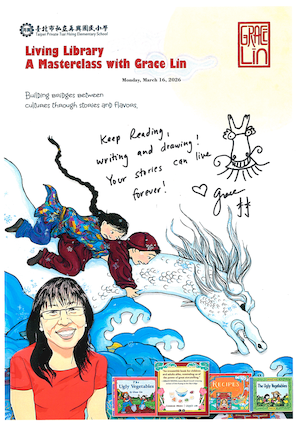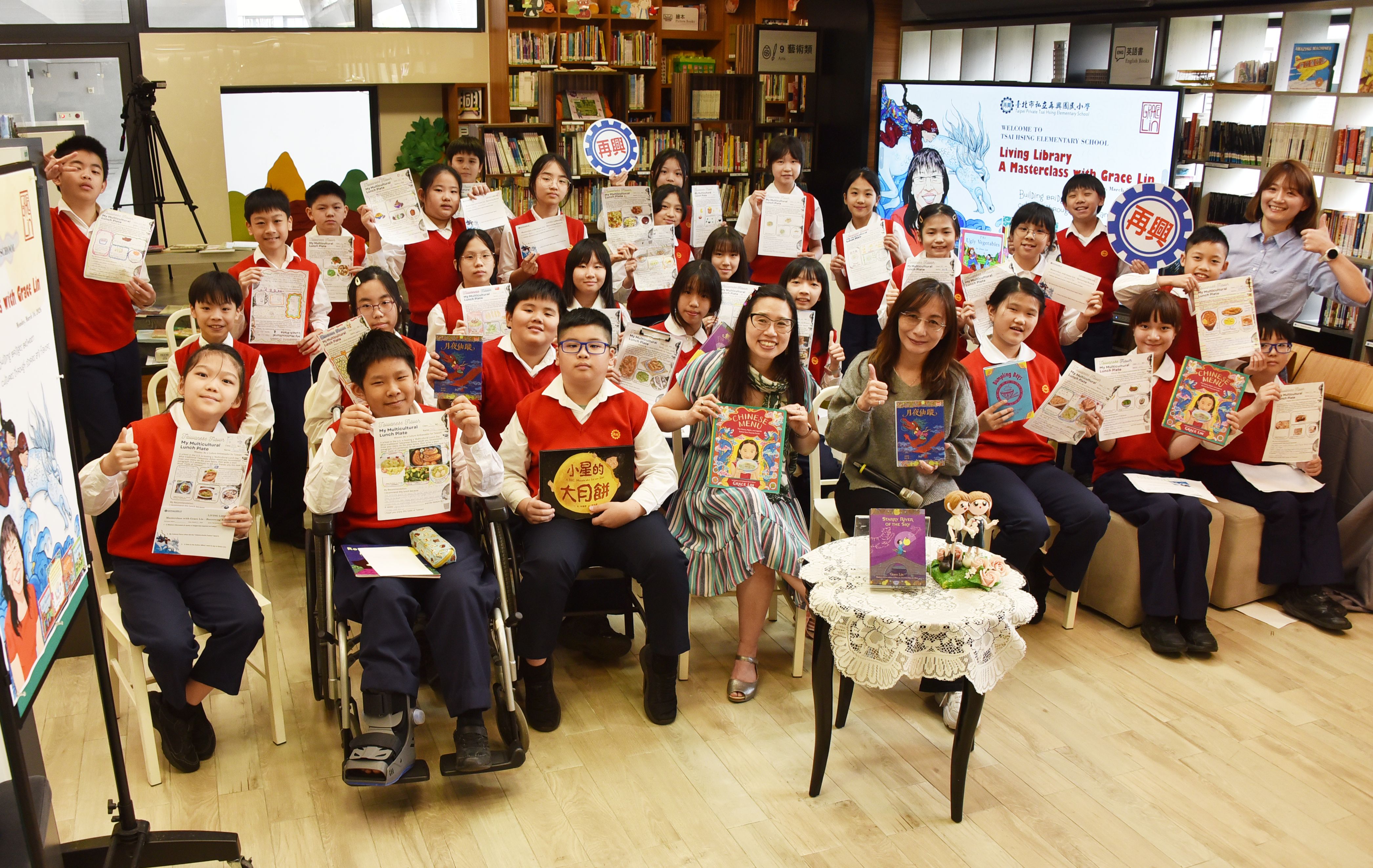 當一本書不只是被閱讀,而是能與作者真實相遇,孩子眼中的世界,也因此多了一層深刻而鮮活的色彩。再興小學日前辦理「真人圖書館:與林珮思(Grace Lin)的大師對話」,邀請美籍臺裔知名作家,也是紐伯瑞獎、蓋澤爾獎與凱迪克獎得主和因為亞太裔藝術與故事講述方面的貢獻,獲白宮表揚為「變革英雄」的珮思老師走入校園,與學生展開一場融合文學閱讀、飲食文化與跨文化理解的深度交流。 活動一開始,由學生以九宮格猜謎揭開序幕,內容涵蓋珮思老師的獲獎經歷、創作主題、靈感來源、雙胞胎系列套書、Podcast,以及家庭生活等。珮思老師親切的一一回應,也特別翻開《小星星的大月餅》,告訴大家繪本中的主人翁正是她的女兒。當譽恩同學提問:「老師寫這些書,是不是想讓美國的小朋友認識東方文化?」珮思老師分享,自己身為亞裔美國人,小時候常因覺得和身邊同學不一樣而感到孤單,但也正是在書寫這些故事的過程中,慢慢更認識了自己。真誠的分享,讓孩子不只聽見創作歷程,也更貼近一位作家如何從生命經驗中找到自己的聲音。